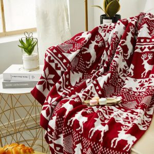 Couverture de Noël rouge et blanc tricotée
