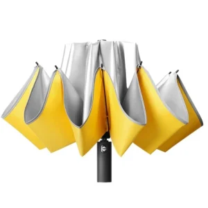 Parapluie jaune inversé revêtement couleur argent titane