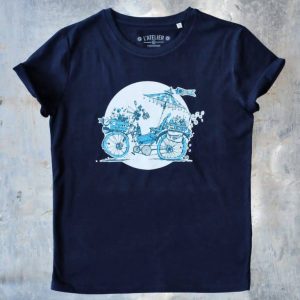 T-Shirt Voyage à bicyclette {coupe Femme – Bleu Marine}